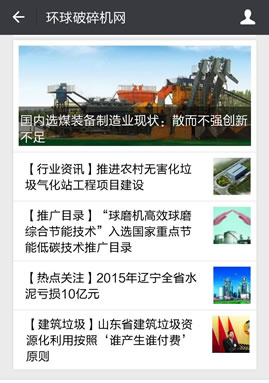 環(huán)球破碎機網(wǎng)整合10年的行業(yè)資源,全力打造破碎篩分行業(yè)動態(tài)微信官方服務(wù)號,24小時全景展現(xiàn)行業(yè)動態(tài),感受全新的閱讀體驗,一手掌握破碎篩分天下事。新的破碎篩分動態(tài)體驗。