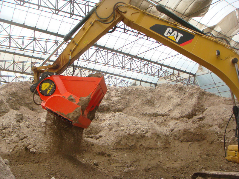 篩分破碎鏟斗適用于裝載機(jī)和挖掘機(jī),挖掘機(jī)可以正鏟安裝也可以反鏟安裝;篩分、破碎、混合、曝氣和裝載可以一步完成??梢杂糜谖廴就寥佬迯?fù),管道細(xì)土篩分,有機(jī)肥翻堆翻拋?zhàn)鳂I(yè),建筑垃圾篩分,動(dòng)物糞便堆肥曝氣等工作。
