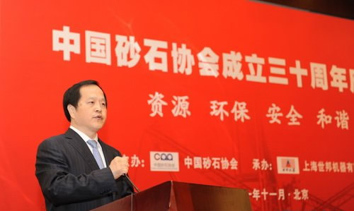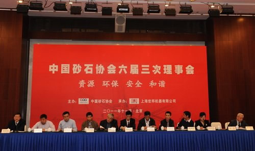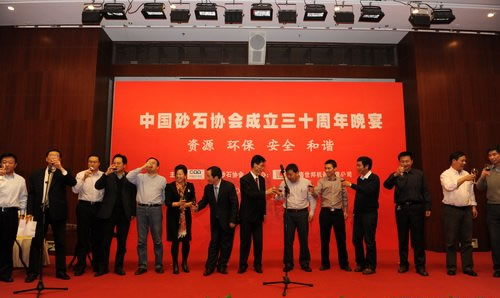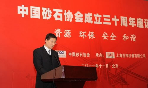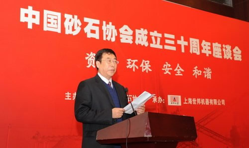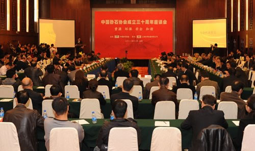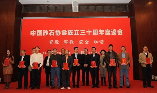 2011年11月12日, “中國砂石協(xié)會(huì)成立三十周年座談會(huì)”在北京召開。中國建筑材料聯(lián)合會(huì)會(huì)長喬龍德,中國建筑材料聯(lián)合會(huì)名譽(yù)會(huì)長張人為,中國建筑材料聯(lián)合會(huì)黨委書記、常務(wù)副會(huì)長孫向遠(yuǎn),中國建筑材料聯(lián)合會(huì)科技委名譽(yù)主任黃書謀,原中國砂石協(xié)會(huì)會(huì)長楊志元,中國建筑材料聯(lián)合會(huì)秘書長張東壯,國資委協(xié)會(huì)辦處長梁方,國土資源部礦產(chǎn)開發(fā)管理司處長金愉中,國家發(fā)展改革委環(huán)境保護(hù)和資源節(jié)約司副處長程慧強(qiáng),工信部節(jié)能與資源綜合利用司處長高振杰,工信部原材料工業(yè)司高萍,商務(wù)部對(duì)外貿(mào)易司處長黃忻,商務(wù)部市場(chǎng)秩序司副處長魏子力,國家海洋局海域管理司主任王冰等協(xié)會(huì)和政府部門領(lǐng)導(dǎo)、砂石行業(yè)企業(yè)代表、新聞媒體等各界代表200多位領(lǐng)導(dǎo)嘉賓出席了此次座談會(huì)。