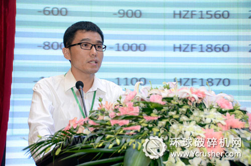 眾所周知,水泥礦山開采剝離產(chǎn)生大量廢石,排出的廢石不僅占用大量寶貴耕地,而且企業(yè)每年還需要支付大量的土地占用費,如果處置不當還對人民群眾的生命安全造成威脅。洛陽大華重型機械銷售部長韓磊正作了《利用水泥礦山加工人工砂石骨料成套技術(shù)》的主題報告。