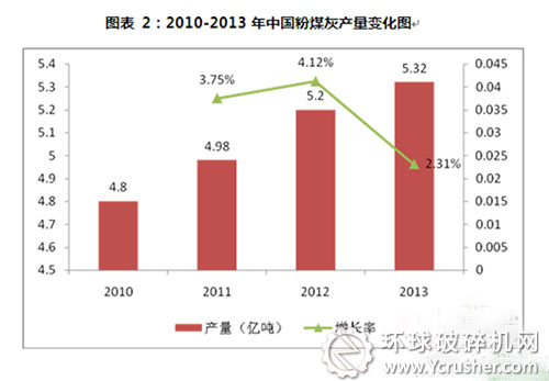 2010-2013年中國(guó)粉煤灰產(chǎn)量變化情況
