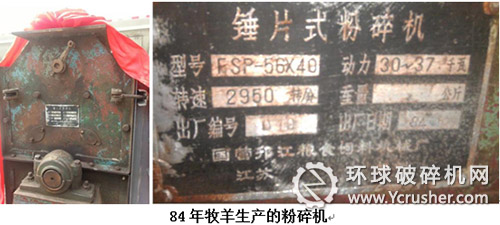 進入車間現場,首先映入眼簾的便是這臺粉碎機,30年的不間斷“服役”在這臺粉碎機上留下了歲月的痕跡,其銘牌上赫然顯示著出廠日期:1984年5月,出廠編號010。現場通電以后,該粉碎機便正常運轉了起來,其錘片在高速運轉下發出的強有力的“呼呼呼”聲音,威風凜凜,無不讓現場的每一位感受到它澎湃的動力——沒有隨著時間的流逝而衰減。