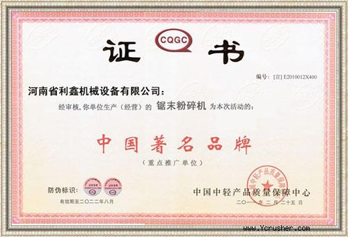 河南利鑫機械鋸末粉碎機被評為“中國著名品牌”。