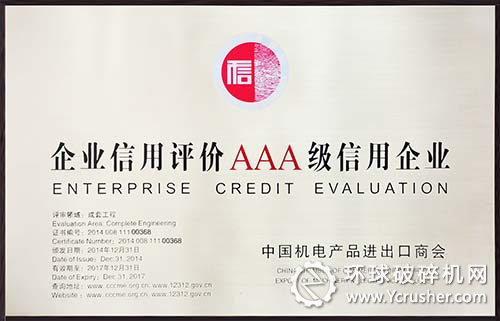 近日,在中國機電產品進出口商會舉辦的企業信用等級評價結果發布會上,中信重工公司獲評成套工程領域信用等級AAA級企業。