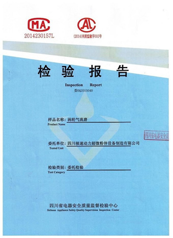 2015年4月3日到2015年4月8日,綿陽市質檢所對我公司最新改造的渦輪氣流磨進行了歷時一周,針對耗能耗電、生產粒度、生產產量等技術的專業檢測。