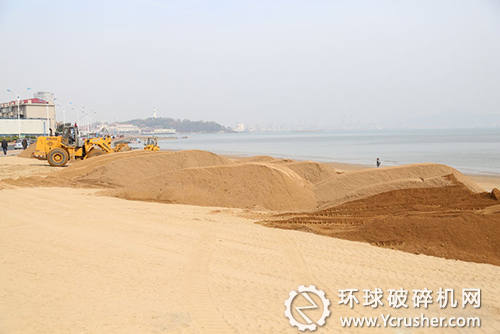 因?yàn)榈乩砦恢玫仍颍瑥?010年開始,第一海水浴場每年4月份都要進(jìn)行海沙回填。在旅游旺季到來前,養(yǎng)管處都要選購雜質(zhì)少、顆粒細(xì)的海沙回填海灘。