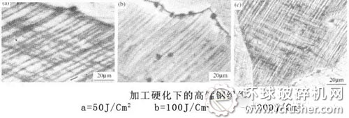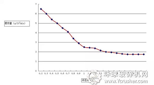 為達(dá)到足夠的表面硬化層,首先要有足夠的沖擊值和變形量,研究表明在沖擊功低于1.2-1.8J時,高錳鋼材質(zhì)在尚未形成良好的加工硬化層之前就產(chǎn)生了大量的磨損,硬化層的生成速度低于磨損速度,導(dǎo)致耐磨性能的大幅降低,并且在加工硬化層形成之前,高錳鋼抗磨粒磨損效果很差。