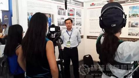 智利礦山機(jī)械展新鄉(xiāng)長城相關(guān)負(fù)責(zé)人接受智利展會主辦方采訪