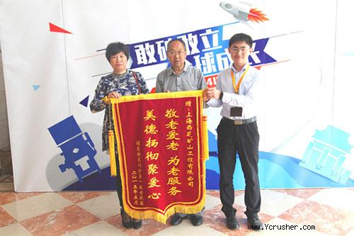 礦山工程機械有限公司贈送“敬老愛老 為老服務 美德?lián)P徹聚愛心”的錦旗,感謝西芝近年來對敬老院公益事業(yè)的大力支持和幫助。西芝負責人張曉龍經(jīng)理、黨總支部書記張?zhí)觳爬蠋煷砑瘓F接受了錦旗。