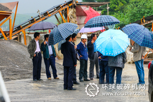 隨后,大家冒雨來到機制砂質量一直較好的二號拌和站碎石場進行了觀摩學習。