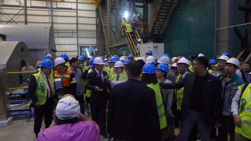 在額爾登特銅礦項目擴產(chǎn)總指揮蓋勒蓋先生陪同下,額勒貝格道爾吉總統(tǒng)與參會嘉賓一起到磨浮現(xiàn)場進行了參觀。在車間內(nèi),額勒貝格道爾吉總統(tǒng)看到公司承制的半自磨機和球磨機正在運行,隨即詢問蓋勒蓋先生,“這兩臺大型磨機是哪個國家制造的設備?”蓋勒蓋先生說:“這是來自中國的設備,是由中信重工提供的,中信重工的大型磨機全世界都在使用,在澳洲、南美、非洲都有廣泛應用,客戶反映均運行良好。”額勒貝格道爾吉總統(tǒng)表示:“很好,很好!”