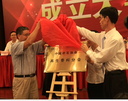 至此,中國砂石協(xié)會再生骨料分會正式成立。由中國砂石協(xié)會會長胡幼奕和建筑材料工業(yè)技術(shù)情報研究所所長徐洛屹為分會揭牌!
