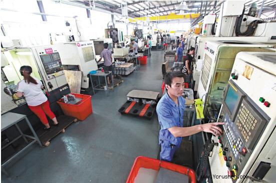 在這套再生金屬的循環(huán)生產(chǎn)流水線中,定子破碎機(jī)“吃”進(jìn)去成堆廢電機(jī)定子,“吐”出米粒大小的銅和更加細(xì)小的塑料屑;米粒大小的銅進(jìn)入液壓拉銅機(jī)成為大小不一的銅塊;銅塊進(jìn)入壓塊機(jī)壓鑄成大小統(tǒng)一的銅件;銅件通過(guò)裝載機(jī)提供給附屬企業(yè)生產(chǎn)成新的電機(jī)定子,實(shí)現(xiàn)了舊電機(jī)到新電機(jī)的循環(huán)生產(chǎn)。