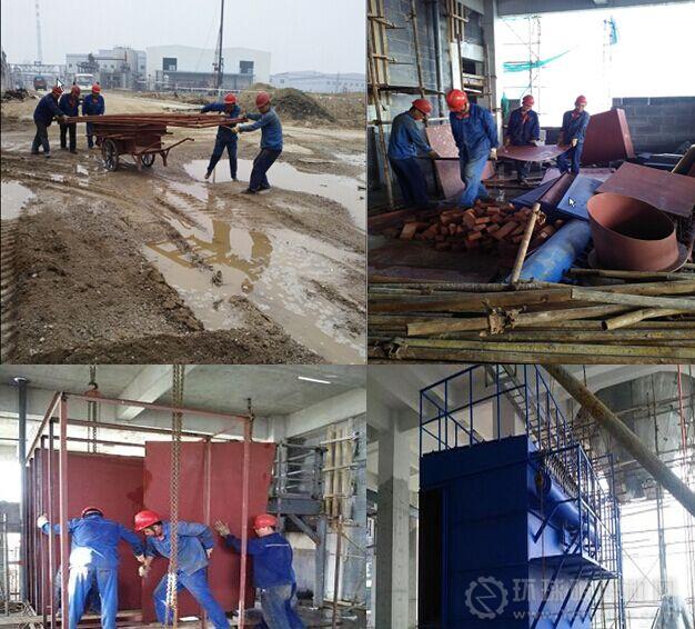在一車間副主任邢文華和班長來永劉的帶領下,他們短時間內趕到現(xiàn)場,在安營扎寨后,經與客戶進行溝通交流,就迅速投入到人員分工、現(xiàn)場測量、制定施工組織方案、技術交底等工作中,大家各司其責,各就其位,拉開了現(xiàn)場制作安裝袋式除塵器的序幕……