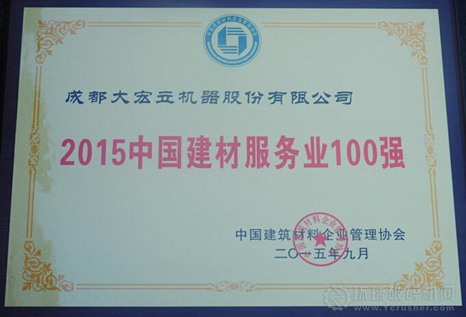 大宏立憑借優質的產品、高品質的客戶服務及綠色環保的戰略思路榮獲“2015中國建材服務業100強”。