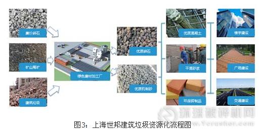 為了響應(yīng)工信部《大宗工業(yè)固體廢物綜合利用十二五規(guī)劃》,受中國砂石協(xié)會、中國再生骨料分會委托,上海世邦成功攻克綠色建材成套實(shí)施方案,可提供國內(nèi)最全、最先進(jìn)的建筑垃圾成套工藝和設(shè)備,可將建筑垃圾加工成再生骨料、再生混凝土和砂漿、免燒磚、水穩(wěn)材料等多種綠色環(huán)保建材,如圖3所示