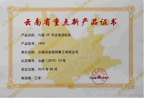 近期,云南省科技廳頒發了2015年省級重點新產品證書,昆重公司研發的1450六輥HC可逆液壓軋機產品入選,至此,公司已有四項產品入選省級重點新產品行列,入選產品類型覆蓋公司起重和軋制設備兩個主要產品領域。