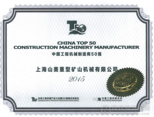 機械工業(yè)協(xié)會、美國設(shè)備制造商協(xié)會、日本建設(shè)機械協(xié)會、韓國建設(shè)機械協(xié)會共同主辦的“2015全球工程機械產(chǎn)業(yè)大會暨50強峰會”上,山美又榮獲2015中國工程機械50強企業(yè)殊榮。