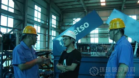 尖山過濾車間崔主任(右)、王班長(左)與美卓服務工程師黃華(中)現場交流VPA壓濾機的操作與維保細節。