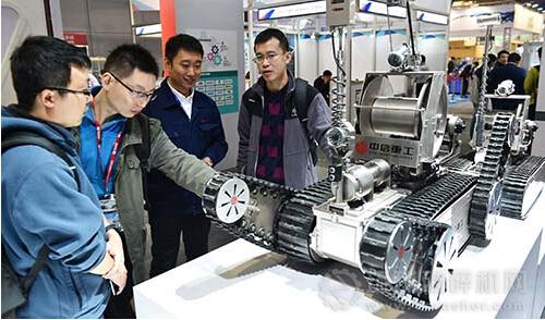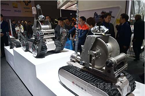 中信重工本次展出的智能裝備與機器人包括特種機器人系列和工業概念機器人系列。特種機器人系列有履帶式機器人平臺、災區偵測機器人、水下機器人平臺、巡檢機器人平臺、管道機器人平臺。工業概念機器人系列有重型