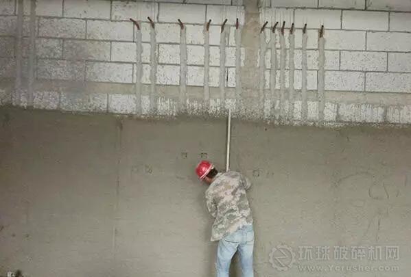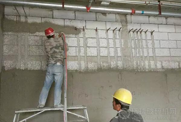 機(jī)械噴涂抹灰作為新型施工工藝還處于初級(jí)應(yīng)用階段,該項(xiàng)目上的順利完工對(duì)機(jī)噴行業(yè)發(fā)展具有一定的推動(dòng)作用。該項(xiàng)目總建筑面積3萬(wàn)m2,抹灰面積5.4萬(wàn)m2,建筑物地下1層、地上10層,建筑物總高度52米。結(jié)構(gòu)形式為鋼筋混凝土框架結(jié)構(gòu),填充墻采用加氣混凝土砌塊。