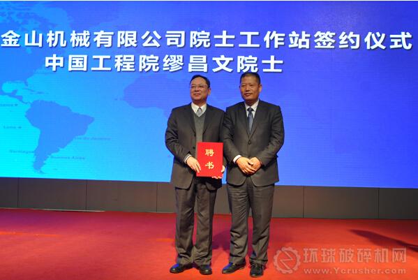 會上,舉行了棗莊市金山機械院士工作站簽約儀式、棗莊市金山機械向中國工程院院士繆昌文院士頒發(fā)聘書儀式。金山機械院士工作站揭牌儀式、金山機械院士工作站“高品質(zhì)砂石骨料研發(fā)中心”授牌儀式。山東省經(jīng)濟和信息化委員會委托山東省機械工業(yè)協(xié)會郭金明會長宣讀了山東省金山機械省級技術中心、首臺套技術裝備核心零部件、山東省優(yōu)秀節(jié)能成果獎文件決定,并進行授牌。