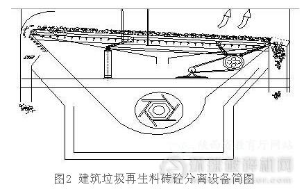 根據(jù)建筑垃圾再生料粘土磚與混凝土的物理特性,基于以上磚砼分離的原理與方法,設(shè)計(jì)了針對建筑垃圾再生料的磚砼分離設(shè)備,如圖2。