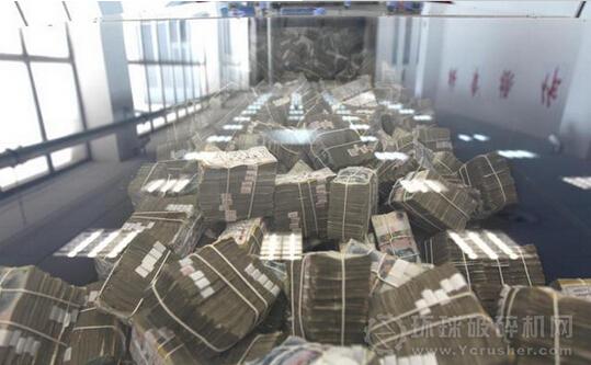 粉碎性銷毀。圖為銷毀設備里的人民幣。