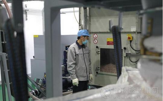 在南京鈔票處理中心銷毀車間,經過復點抽查完畢的殘損人民幣由大型銷毀設備進行