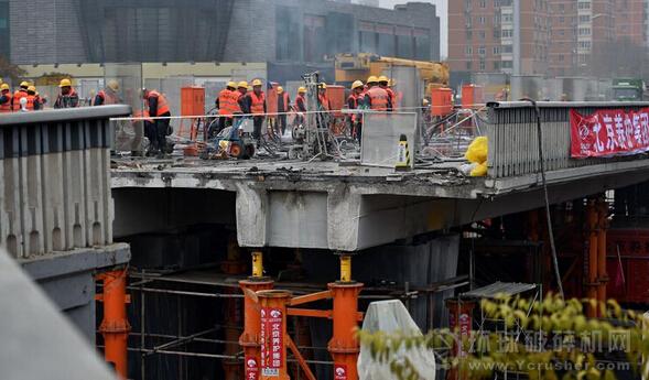 23點(diǎn)一到,現(xiàn)場立即啟動京密路和三環(huán)的交通封閉措施,240位工人使用68臺“金剛石繩鋸機(jī)”,同時開啟對三元橋舊橋面的切割工作。