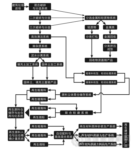 北京元泰達建筑垃圾資源處置與利用一體化工廠建筑垃圾處置流程示意圖