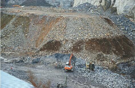 現(xiàn)場直擊:大面山體被削開,碎石機作業(yè)聲“隆隆”響