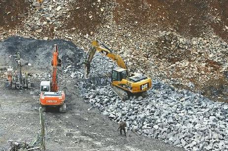 18日,十六里河街道辦復興村,兩臺機器正在開采石料。 記者張剛 攝