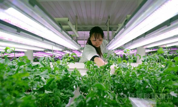▼ 一名婦女負(fù)責(zé)在實(shí)驗(yàn)溫室里種植生菜,從而讓礦場(chǎng)職工每天都能吃上新鮮蔬菜。
