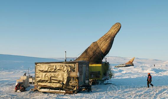 ▼ 鉆頭被包裹起來(lái)以防嚴(yán)寒造成設(shè)備毀損。在這里氣溫可以低至零下50攝氏度。