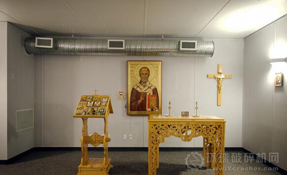 ▼ 礦區(qū)有許多設(shè)施能夠幫助工人們擁有一種家的感覺,包括這個(gè)懸掛有俄羅斯東正教肖像畫的教堂。