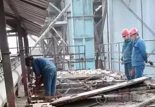 繼7天的結構件地面預制完成后,12月8日, 回轉窯作業區1#工藝除塵中修進入頂部施工階段。施工小組成員,在工作前集思廣議安全措施,工作中執行聯保互保,保證了工作安全有序進行。首先進行十個水槽框架的拆除。