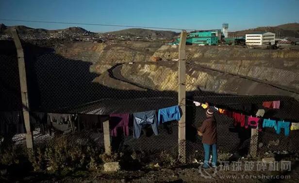 塞羅德帕斯科的這個(gè)露天采礦場(chǎng)是由一家秘魯公司Volcan Compa?ía Minera的子公司運(yùn)營(yíng)的。它是一個(gè)階梯狀的坑洞,外型有如倒置的金字塔。這個(gè)坑洞長(zhǎng)一英里,寬半英里,深四分之一英里。它就像一片饑餓的海洋,一圈又一圈地向外擴(kuò)張著,不斷逼退邊上的城鎮(zhèn)。你可以在坑洞邊上看到一些被荒廢的房屋,房屋上的鋼鐵屋瓦銹跡斑斑、滿是凹坑,在深坑和人們居住生活的城市之間攔出了一條無(wú)人地帶。