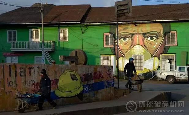 秘魯畫家Daniel Cortez Torres(人們也叫他Decertor)在塞羅德帕斯科一處房屋上繪制的這幅壁畫影射了折磨著這座城鎮(zhèn)的污染問(wèn)題。