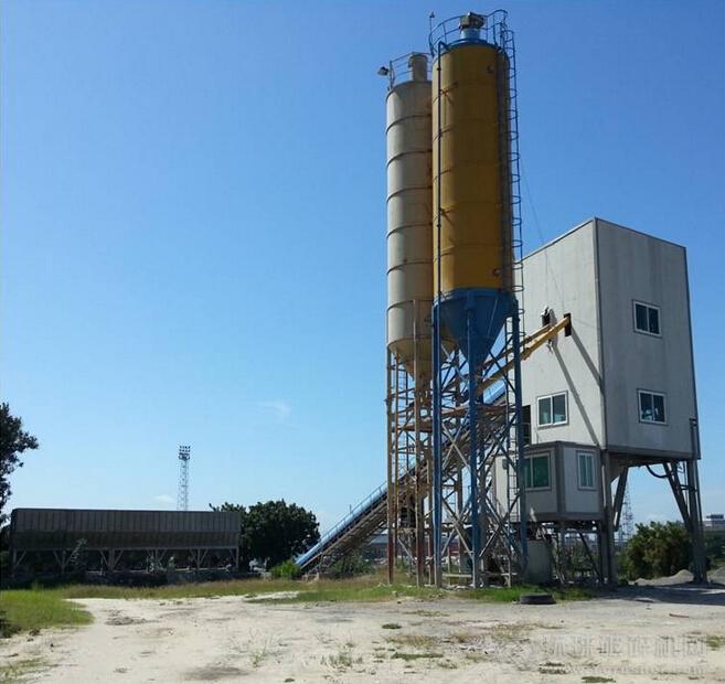 位于坦桑尼亞的南方路機集裝式斗提水泥混凝土攪拌站HZDJ125