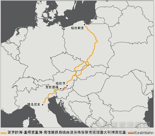 Koralmbahn是波羅的海至亞得里亞海的高性能鐵路聯(lián)絡(luò)線的一部分,該聯(lián)絡(luò)線位于波蘭格但斯克與意大利博洛尼亞之間,且與意大利里雅斯特相連。
