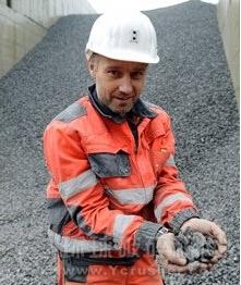 高達(dá)200萬噸的破碎骨料將被返回應(yīng)用至隧道施工現(xiàn)場,以減少對環(huán)境的影響;固定破碎裝置的操作員Alfred Eckhart向我們展示骨料產(chǎn)品。