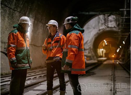 美卓的Franz Zingl(左)和Thomas Landkammer(右)正在與ARGE合資企業(yè)的設(shè)備經(jīng)理Robert Goliasch(中間)參觀KAT2現(xiàn)場。