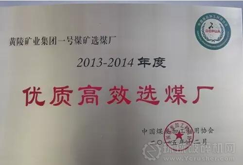 黃陵礦業(yè)一號煤礦選煤廠被中國煤炭加工利用協(xié)會評為“2013-2014年度全國優(yōu)質(zhì)高效選煤廠”、“2013-2014年度行業(yè)級質(zhì)量標(biāo)準(zhǔn)化選煤廠”,廠長緱新學(xué)同志被授予“2013-2014年度全國優(yōu)質(zhì)高效選煤廠廠長”稱號,這是陜煤化集團近年來首次獲得此評選多項榮譽,為集團公司下屬的各選煤廠樹立了標(biāo)桿。