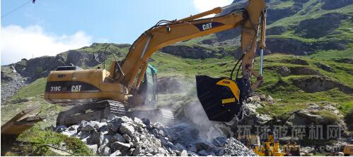 只需要將鏟斗和挖掘機(jī)相連,無需裝置,無需運(yùn)輸,就可以在任意地點(diǎn),哪怕是斜坡上進(jìn)行破碎,所生產(chǎn)的碎料剛好可以滿足管道施工所用。這是