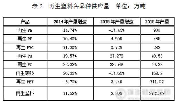 表2 再生塑料各品種供應(yīng)量 單位:萬噸