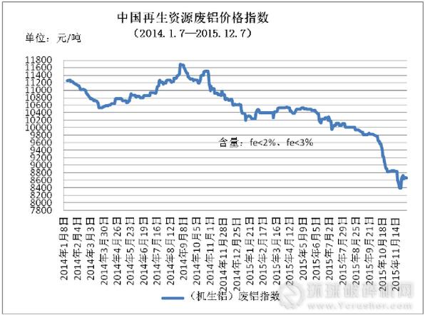 圖四:2014年至2015年12月廢鋁價(jià)格指數(shù)圖