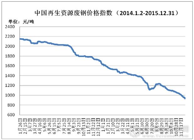 7月直到12月初廢鋼市場(chǎng)一直在1400多元/噸維持弱勢(shì)行情,進(jìn)入7月份以后,價(jià)格跌破1400元/噸,進(jìn)入1300元的低谷區(qū),至11月以后跌破1000元/噸(見圖一)。