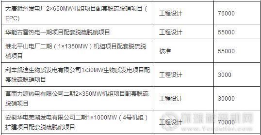 2016年2月近一個(gè)月國內(nèi)擬建和在建的脫硫脫硝項(xiàng)目(部分)