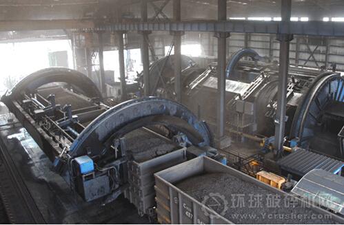 京唐港翻卸車間的三條美卓翻車機系統(tǒng)。